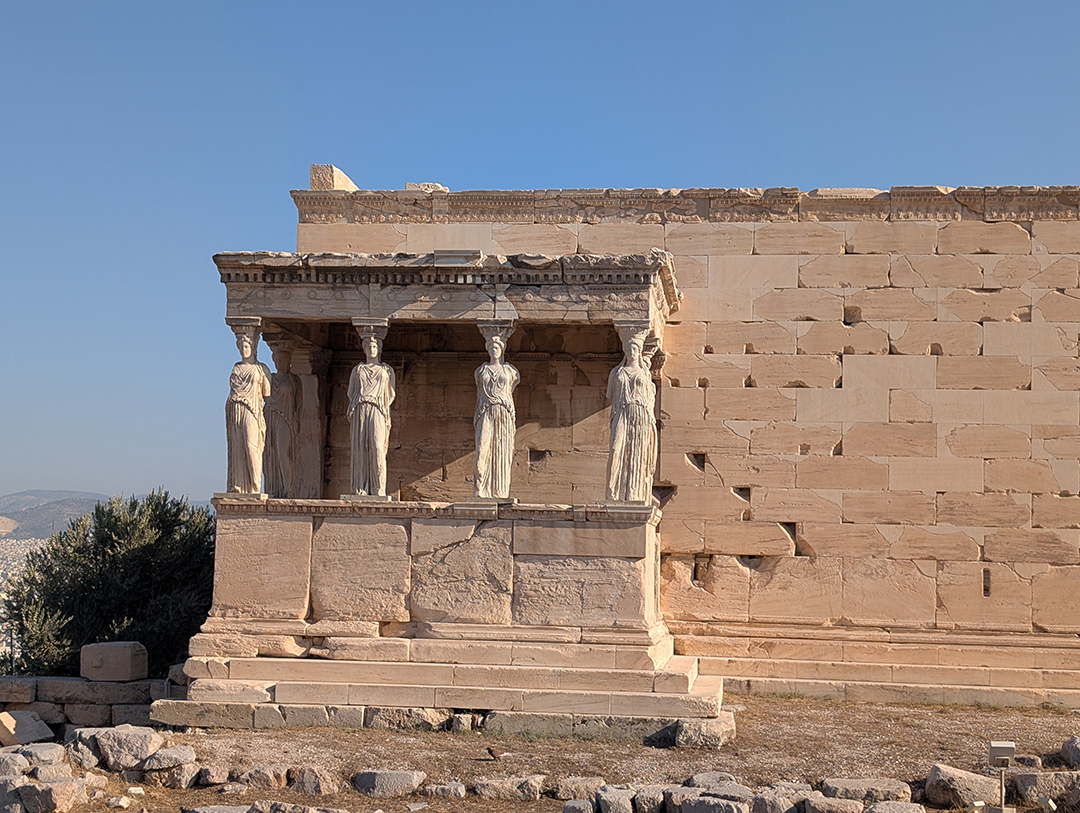 Оно што нисмо знале јесто то да су каријатиде на Ерехтејону – реплике. Оригиналне каријатиде – њих пет од шест – од 1978. године се налазе у музеју Акропољ. Разглог је јасан – каријатиде су пренете у музеј како би се сачувале од оштећења узрокованих загађењем и разним непогодама.