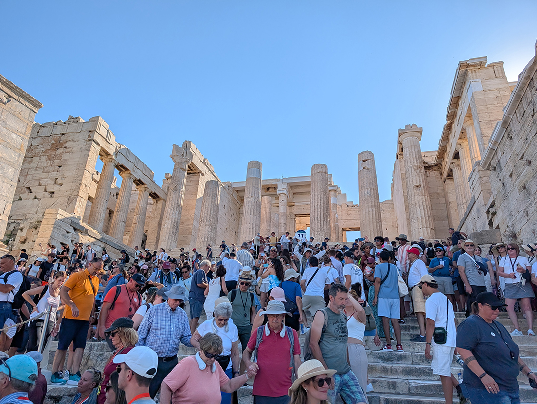 Сунце се полако пењало и свему почело да даје блештав, а ипак различит сјај. Да врућина не би постала неподношљива – суви, северни etesians ветрови (тзв. мелтеми) дували су тога јутра Атином и на свој начин нам говорили да је време да се препустимо ужитку и дефинитивно заборавимо на фризуре. Убрзо смо се нашле у реду с туристима из читавог света, који ће наредна четири сата провести на Акропољу.
